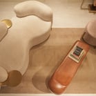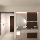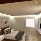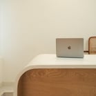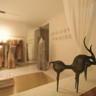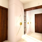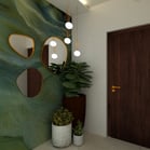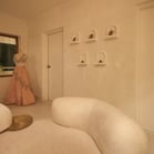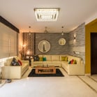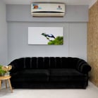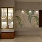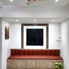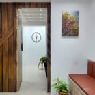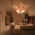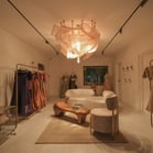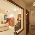 This 25-year-old residence was transformed into a luxurious fashion studio, blending the original structure with modern design elements. The minimalist interiors reflect the boutique’s brand, featuring a trellis arch with lush greenery, textured paints, and a cohesive color palette. A custom fabric chandelier adds dynamic light, while bespoke brass-accented furnishings and a carved wood coffee table highlight the studio's elegance and attention to detail. The result is a refined, functional space that embodies sophistication and creative excellence.