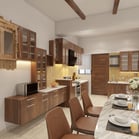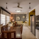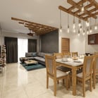 This 3BHK apartment at Purva Skywood, located on a high floor, features a remodeled layout for modern living. The open kitchen and utility space create a seamless flow, while the chic master bedroom offers a luxurious retreat. The kids' bedroom is designed to adapt to growing needs, and the guest room doubles as a flexible workspace. Thoughtful lighting design and strategic furniture arrangement enhance the living room's sense of space, while the dining area, with an integrated bar counter, blends functionality with style.