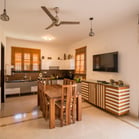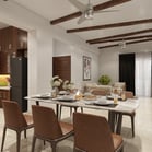 This 4BHK villa at Prestige Silver Oaks is designed with a blend of luxury and functionality. The living room features custom handmade tile cladding, adding unique character to the space. An open kitchen and dining area seamlessly connect to a beautiful garden, enhancing the home's connection with nature. The villa also includes a home theatre, spacious bedrooms, and a dedicated home office or study, offering comfort and versatility in every corner.