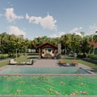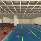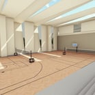 This sports complex design proposal for SJBIT, Bangalore, features state-of-the-art facilities to support a variety of sports. The complex includes an Olympic-sized swimming pool, basketball, throwball, badminton, squash courts, indoor cricket nets, bowling, table tennis, and board games. A canteen is also integrated for convenience. The indoor stadium is seamlessly connected to the cricket and football stadiums, ensuring easy access for athletes between spaces. The roof over the seating area is thoughtfully integrated into the overall structure, offering both functionality and aesthetic appeal.